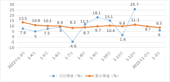 2、工业增加值:一季度,全市规上工业增加值同比增长8.5%,高于全省4.3个百分点,增速排名全省第1位。