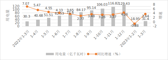 一季度,全市工业用电量31.40亿千瓦时,同比增长3.64%,高于全省平均增速6.36个百分点,增速全省地区排名第2。其中制造业用电量25.97亿千瓦时,同比增长6.57%。3月当月全市工业用电量12.45亿千瓦时,同比增长11.35%,高于全省平均增速10.5个百分点,增速全省地区排名第2。