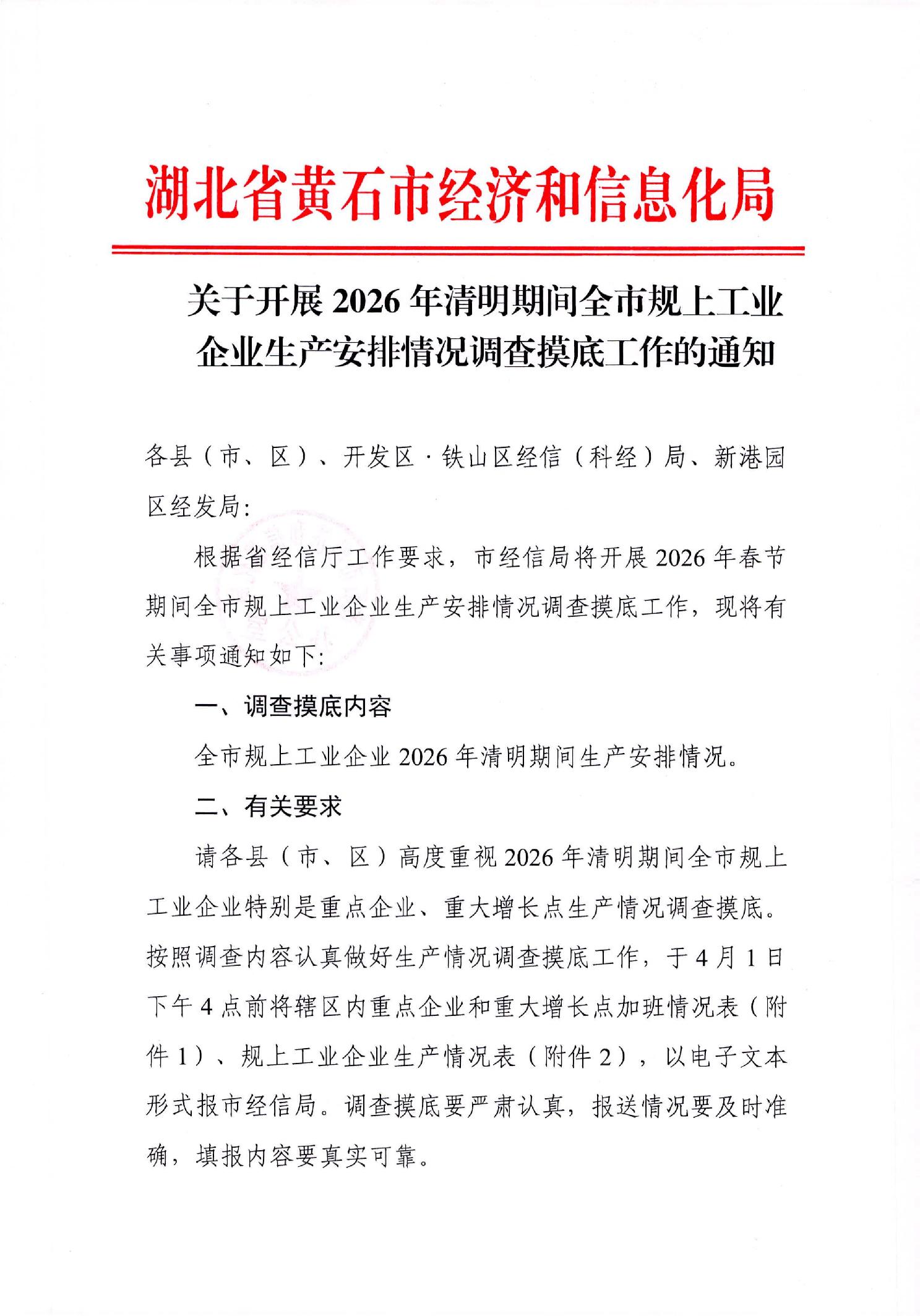 关于开展2026年清明期间规上工业企业生产安排情况调查摸底工作的通知