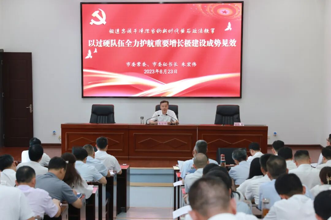 2023年8月23日,全市政法领导干部学习贯彻习近平新时代中国特色社会主义思想锻造政法铁军专题研讨班开班。市委常委、市委秘书长朱宏伟出席开班仪式,并以“锻造忠诚干净担当的新时代黄石政法铁军 以过硬队伍全力护航重要增长极建设成势见效”为主题,为学员作专题辅导报告。