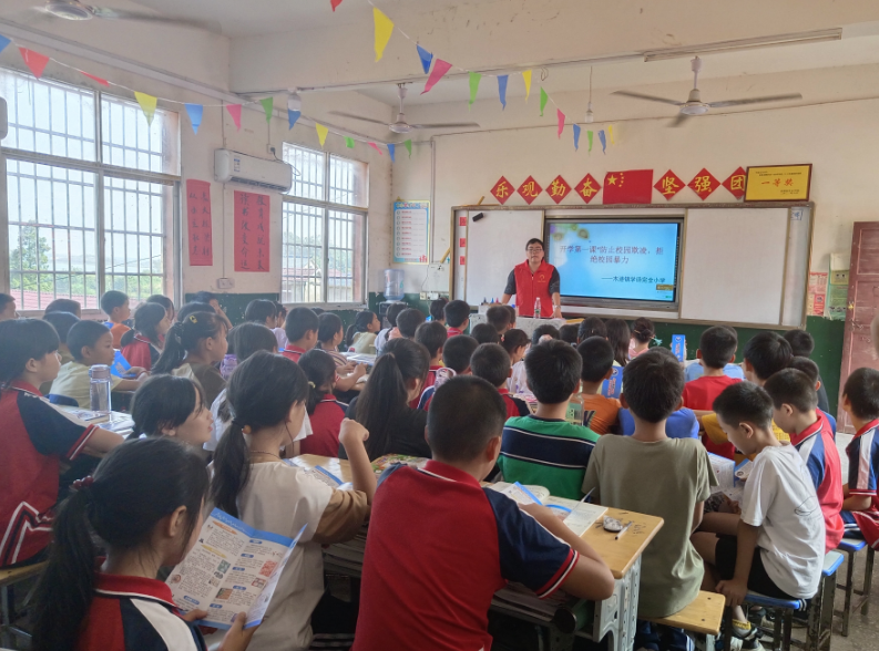 9月7日,阳新县司法局木港司法所到学诗完全小学开展以“抵制校园暴力,花朵茁壮成长”为主题的“开学第一课”法治宣传教育活动。