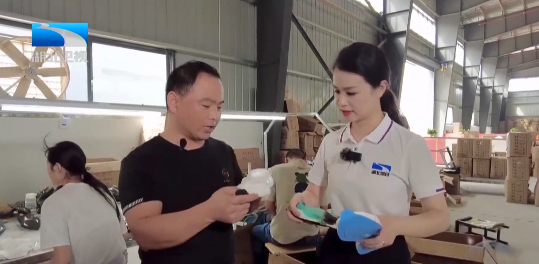 长江云新闻记者胡夏颖:“我身旁的宝加鞋业,是落户阳新的第一家鞋企,而马路对面是当地第一家有自主品牌的可兴鞋业。从代加工到自主品牌,是打造中部鞋都的关键一步。县域经济的本质是特色经济,要坚持‘一把钥匙开一把锁’。立足近16万的‘阳新鞋匠’这一特色人力人才资源,阳新县政府积极对外招商引资,主动布局打造‘中部鞋都’,大力加强自主创新,完善产业链,找到了那把强县富民的‘钥匙’。