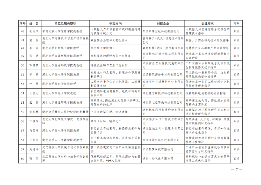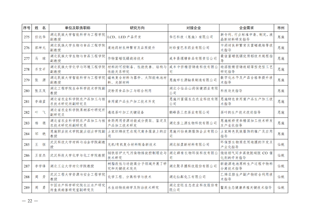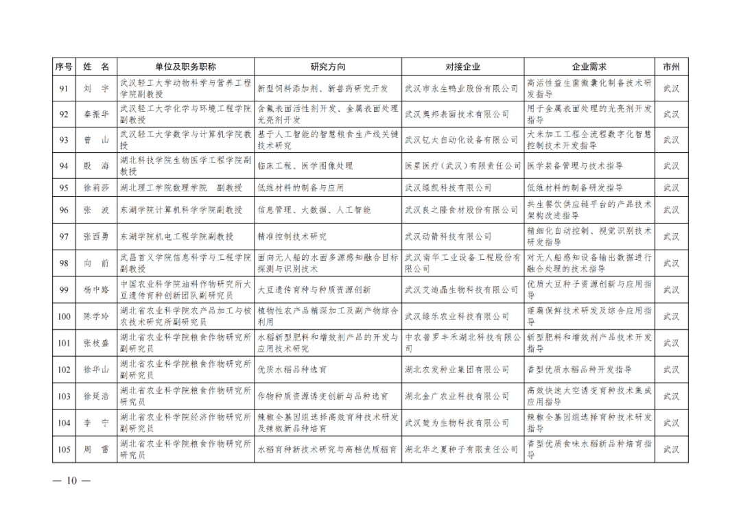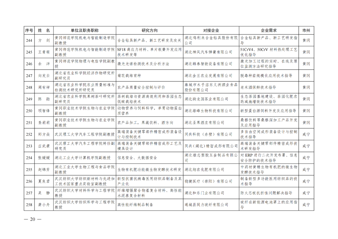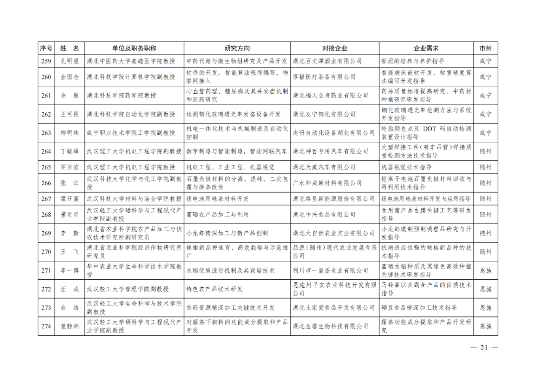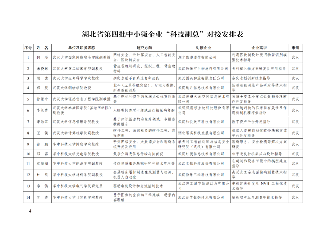 湖北省第四批中小微企业“科技副总”人选公布