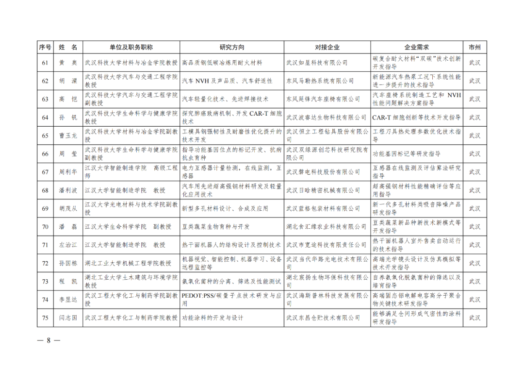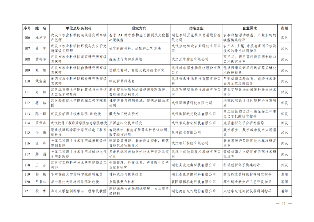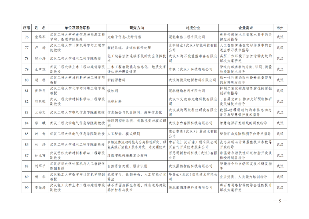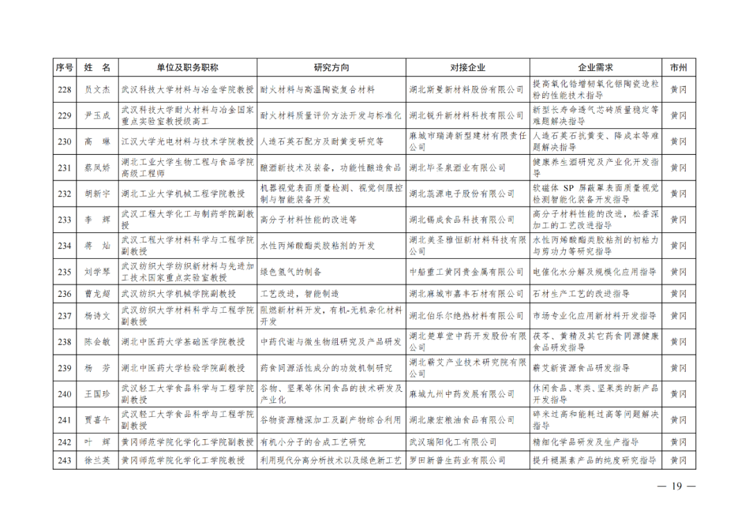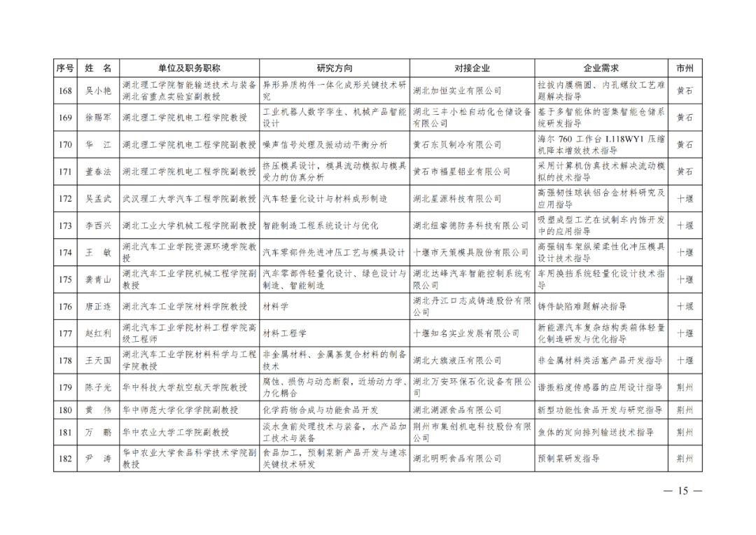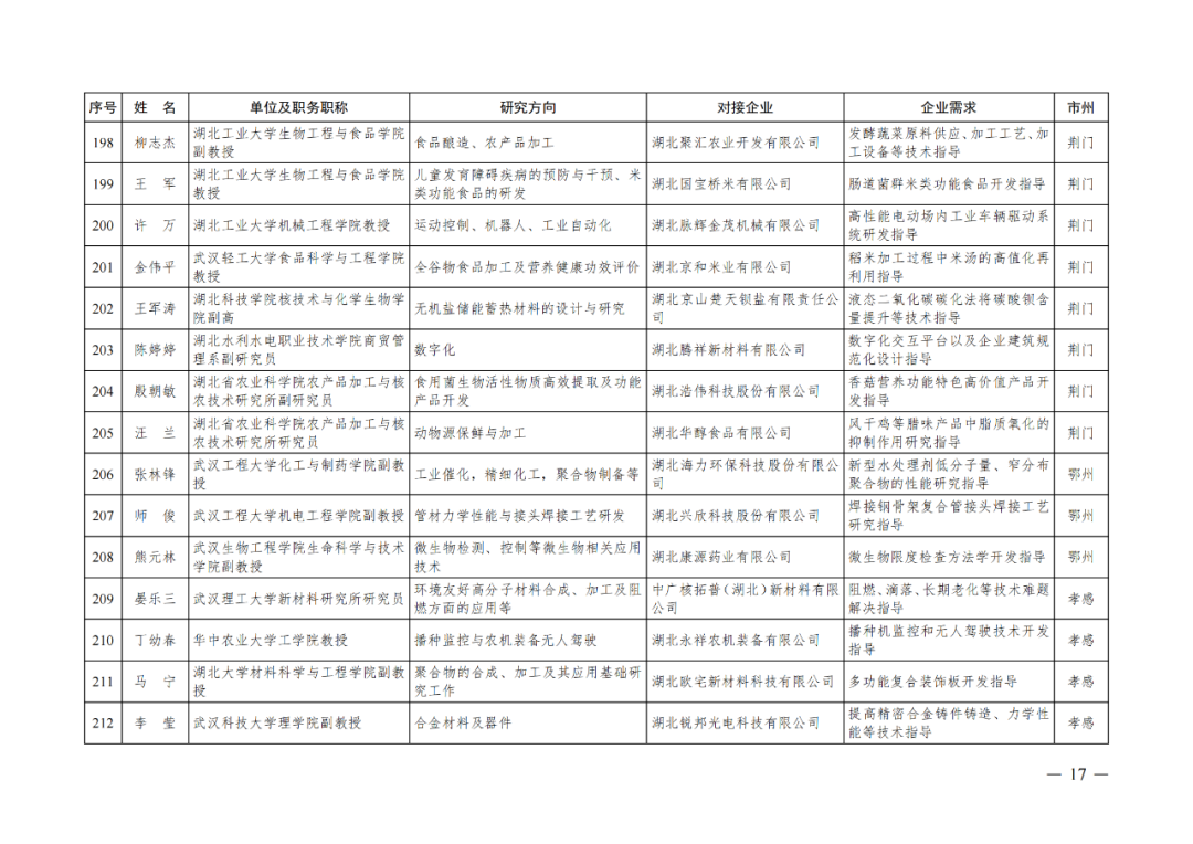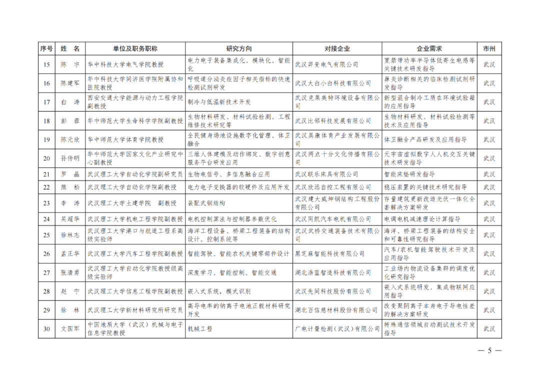 湖北省第四批中小微企业“科技副总”人选公布
