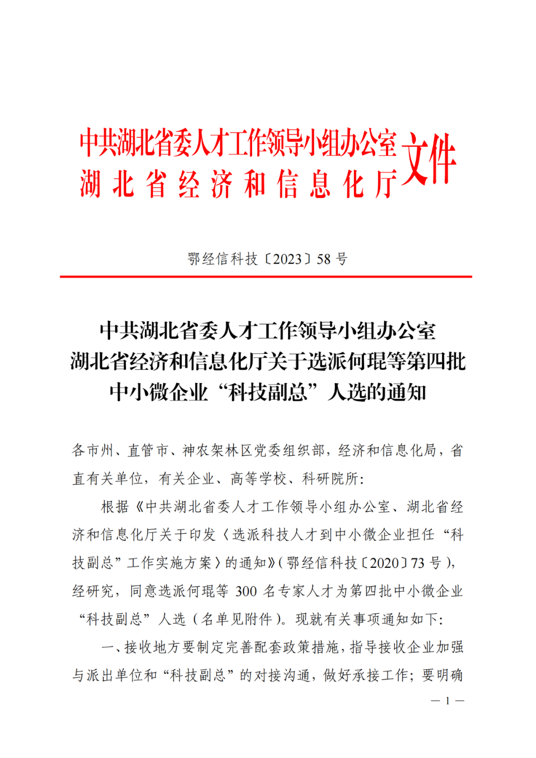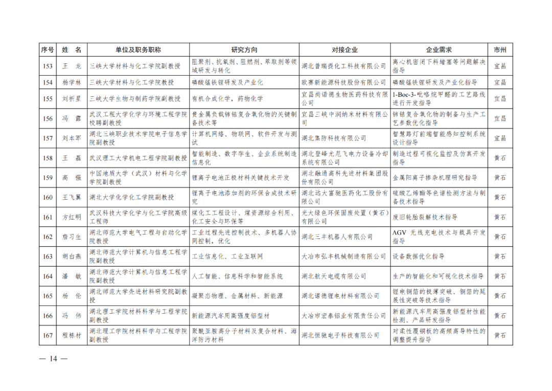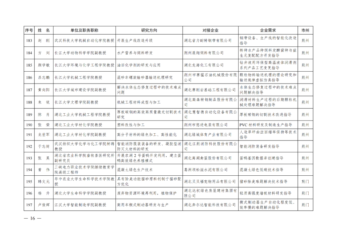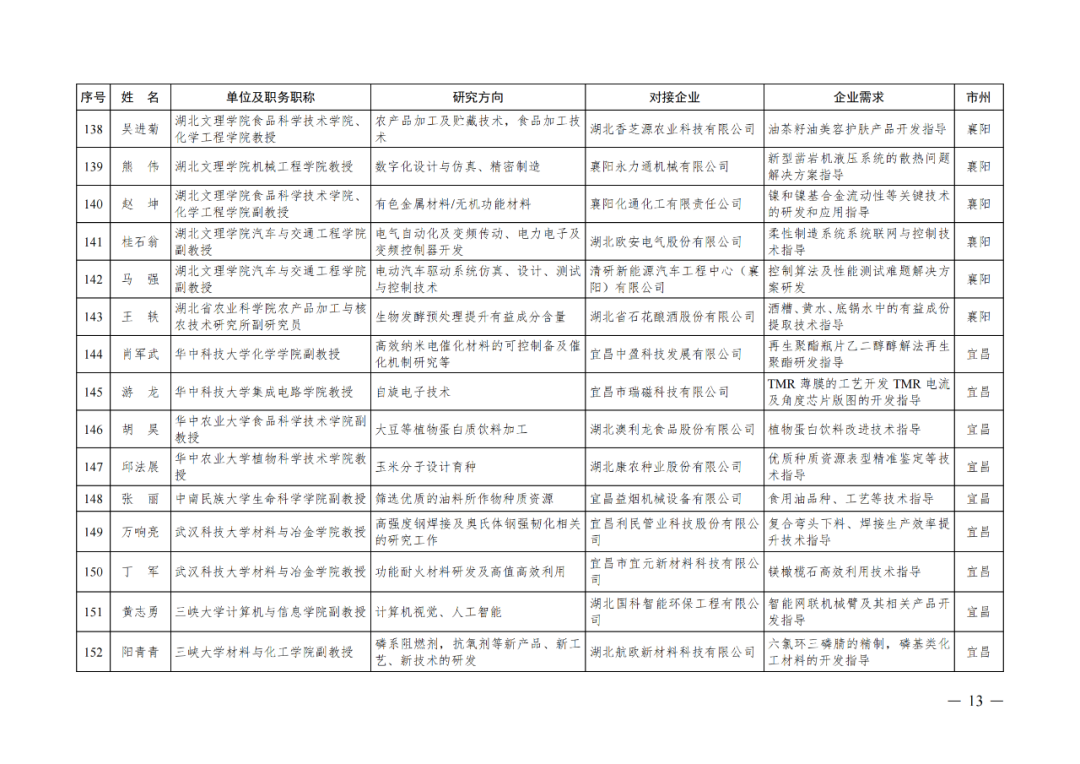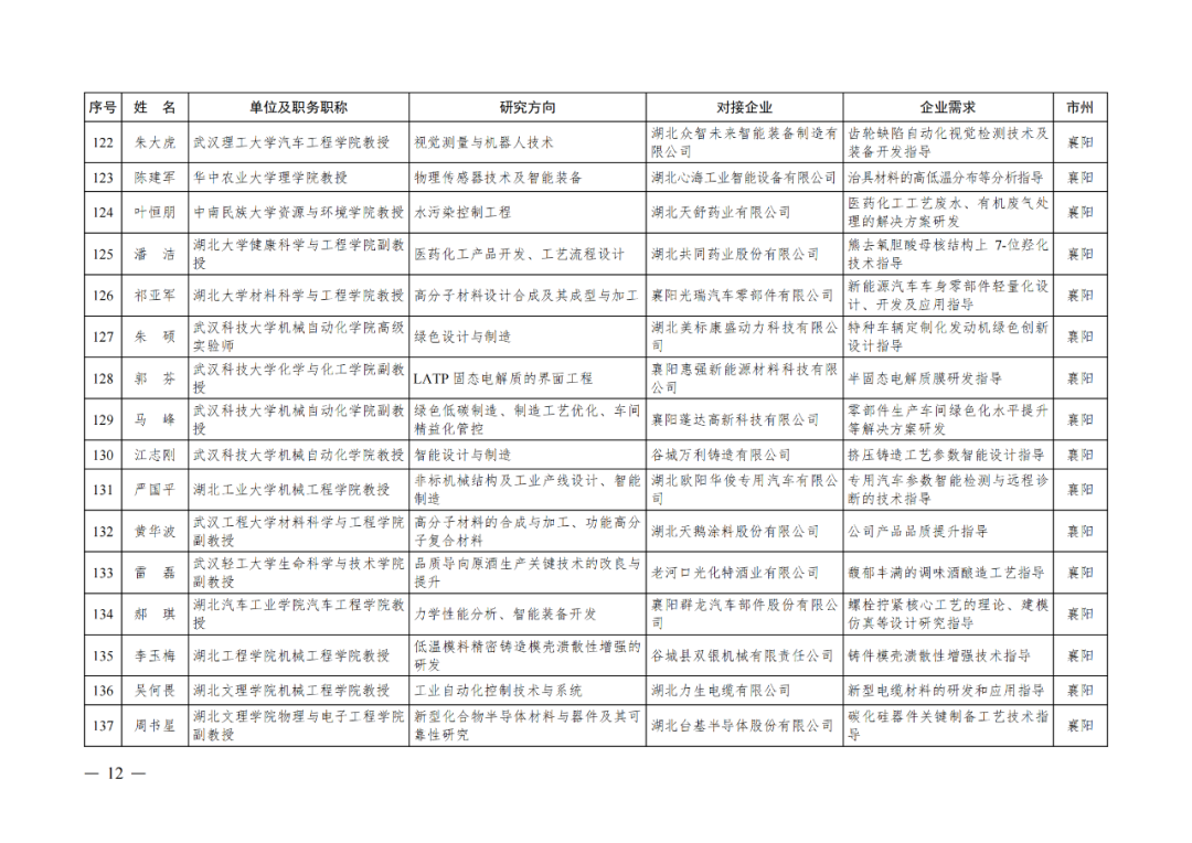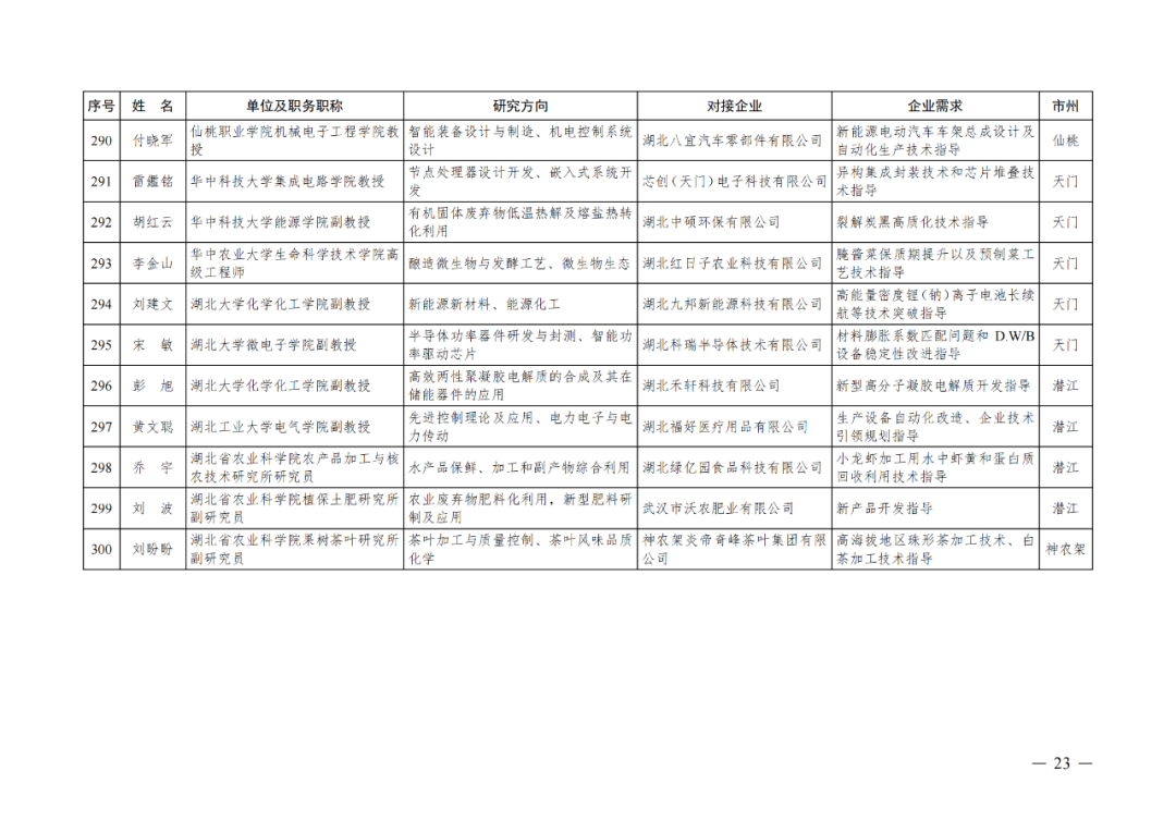 近日中共湖北省委人才工作领导小组办公室、湖北省经济和信息化厅公布了“湖北省第四批中小微企业‘科技副总’人选名单。来自省内外各重点院校的300名专家人才,作为第四批“科技副总”被选派至全省多家重点企业开展服务,帮助企业提升创新能力、培养创新人才、深化产学研合作,促进科技成果加速转化,推动全省经济社会高质量发展。
