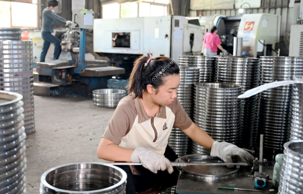 在瑞通公司生产车间里,铸模、打磨、抛光、包装,员工们在各自岗位有序地忙碌。等待装运的货车,待公司质检员点数发货后,便将这些产品运送港口码头,通过水路漂洋过海出口销售到海外。