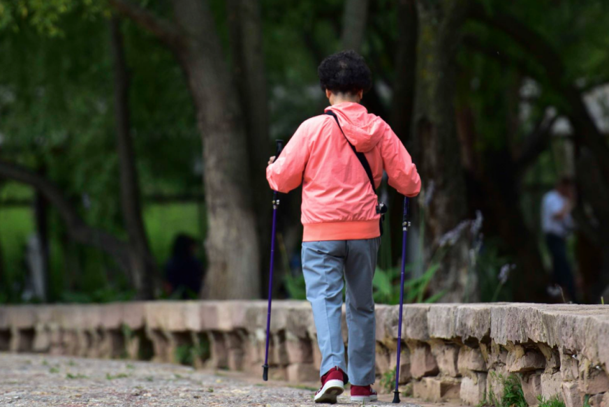 有些老人习惯背手溜达走路,上身重心前移,会形成含胸驼背的体态,不能充分活动身体。