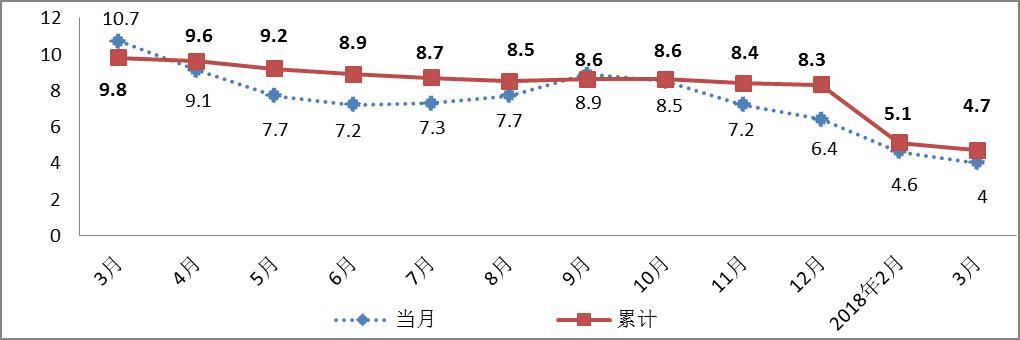 一季度,湖北工业品出厂价格指数(PPI)同比上涨4.4%,全国工业品出厂价格指数(PPI)同比上涨3.7%,高于全国0.7个百分点。从月度同比看,湖北1月份上涨5.0%,2月份上涨4.4%,3月份上涨3.8%,3月份涨幅较1、2月份分别回落1.2和0.6个百分点。主要是受国际大宗商品价格下降以及钢铁、水泥等产品价格在经过前期相对较长时间上涨后有所回调。但从涨幅看,受翘尾因素、春节假期企业减产停工以及市场供求关系变化影响,涨幅较上年同期回落1.5个百分点。
