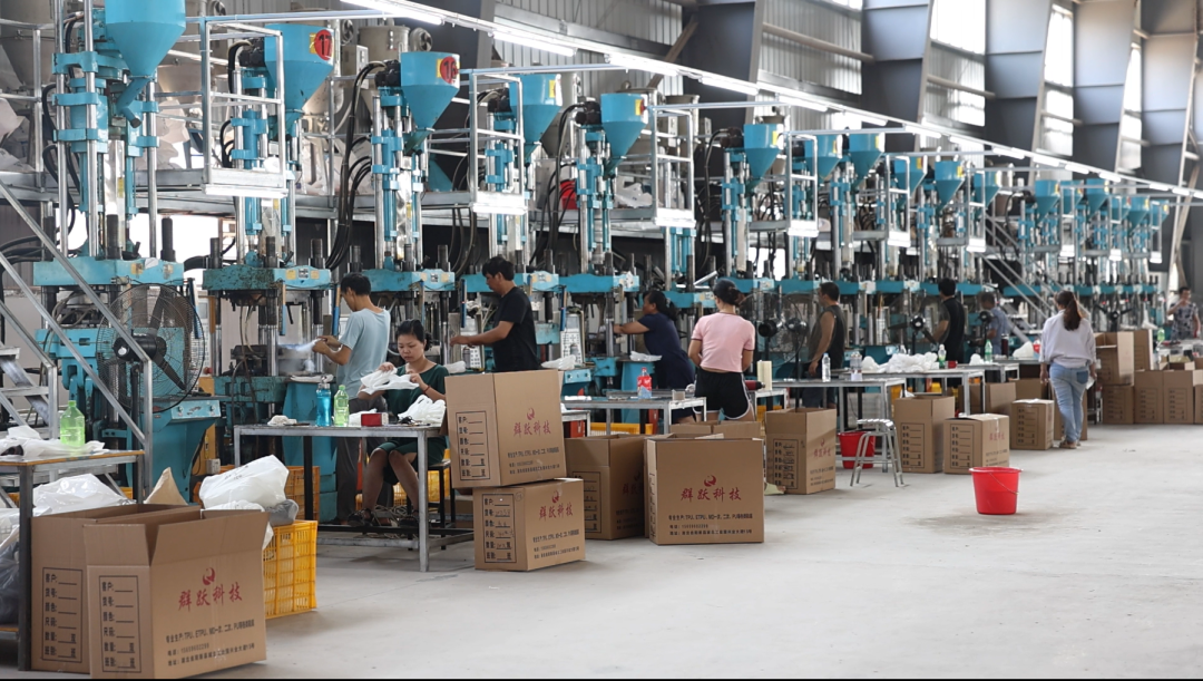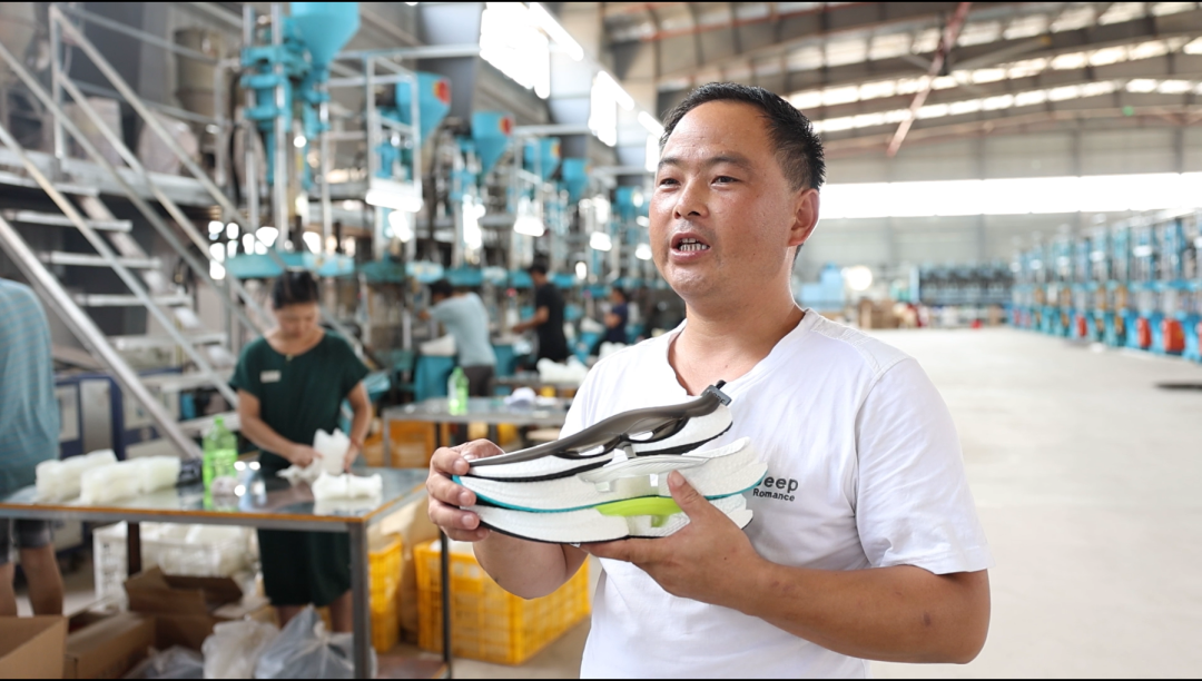 我们公司主要生产鞋底、TPU、组合,还有增爆鞋底,和目前网上最火爆的流行新款式鞋底,还有就是染色方面,我们自己生产,自己投入使用,包括和周边地区一起进行一个联营联合,互赢互利。