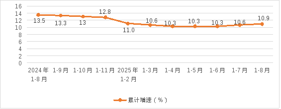 2、规模以上工业增加值增速:1-8月,全市规上工业增加值同比增长10.9%,高于全省3.1个百分点,增速排名全省第6位。