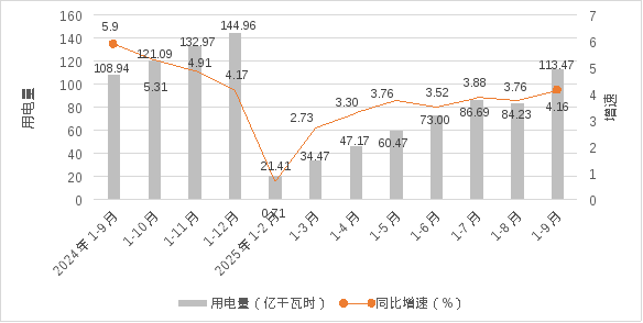1-9月,全市工业累计用电量113.47亿千瓦时,同比增长4.16%,低于全省平均增速2个百分点,增速全省排名第14。其中制造业用电量95.41亿千瓦时,同比增长4.07%。9月当月工业用电量13.19亿千瓦时,同比增长7.34%,高于全省平均增速1.79个百分点,增速全省排名第6。