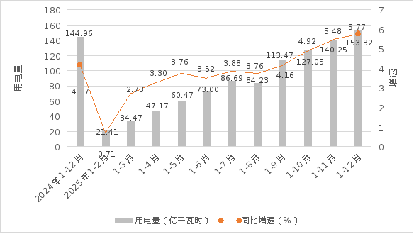 1-12月,全市工业累计用电量153.32亿千瓦时,同比增长5.77%,低于全省平均增速0.59个百分点,增速全省排名第13。其中制造业用电量129.69亿千瓦时,同比增长6.25%。12月当月工业用电量13.07亿千瓦时,同比增长9.0%,高于全省平均增速5.33个百分点,增速全省排名第3。