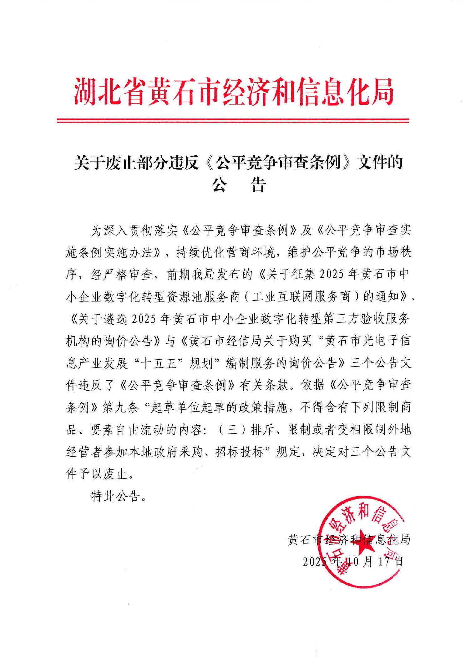 关于废止部分违反《公平竞争审查条例》文件的公告