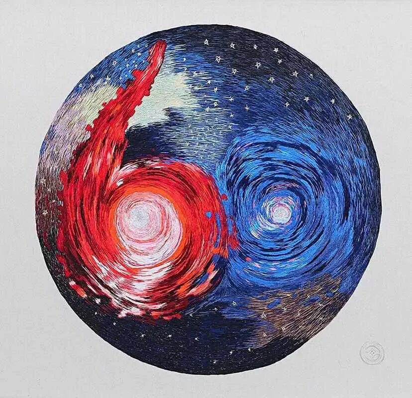 “《星云之梦》不同于我以前的任何作品,因为要上太空,它使用的布料和线都是特制的,质地坚硬,密度高,用针特别费力,刺绣时经常将手指刺破。”刘小红说,为了赶工期,她在伤口贴上创可贴继续绣制。