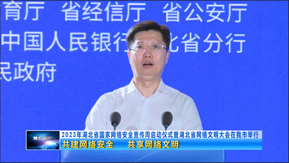 11日,2023年湖北省网络安全宣传周启动仪式暨湖北省网络文明大会在我市举行。省委常委、省委宣传部部长琚朝晖宣布活动启动并讲话。市委书记郄英才出席活动并致辞。