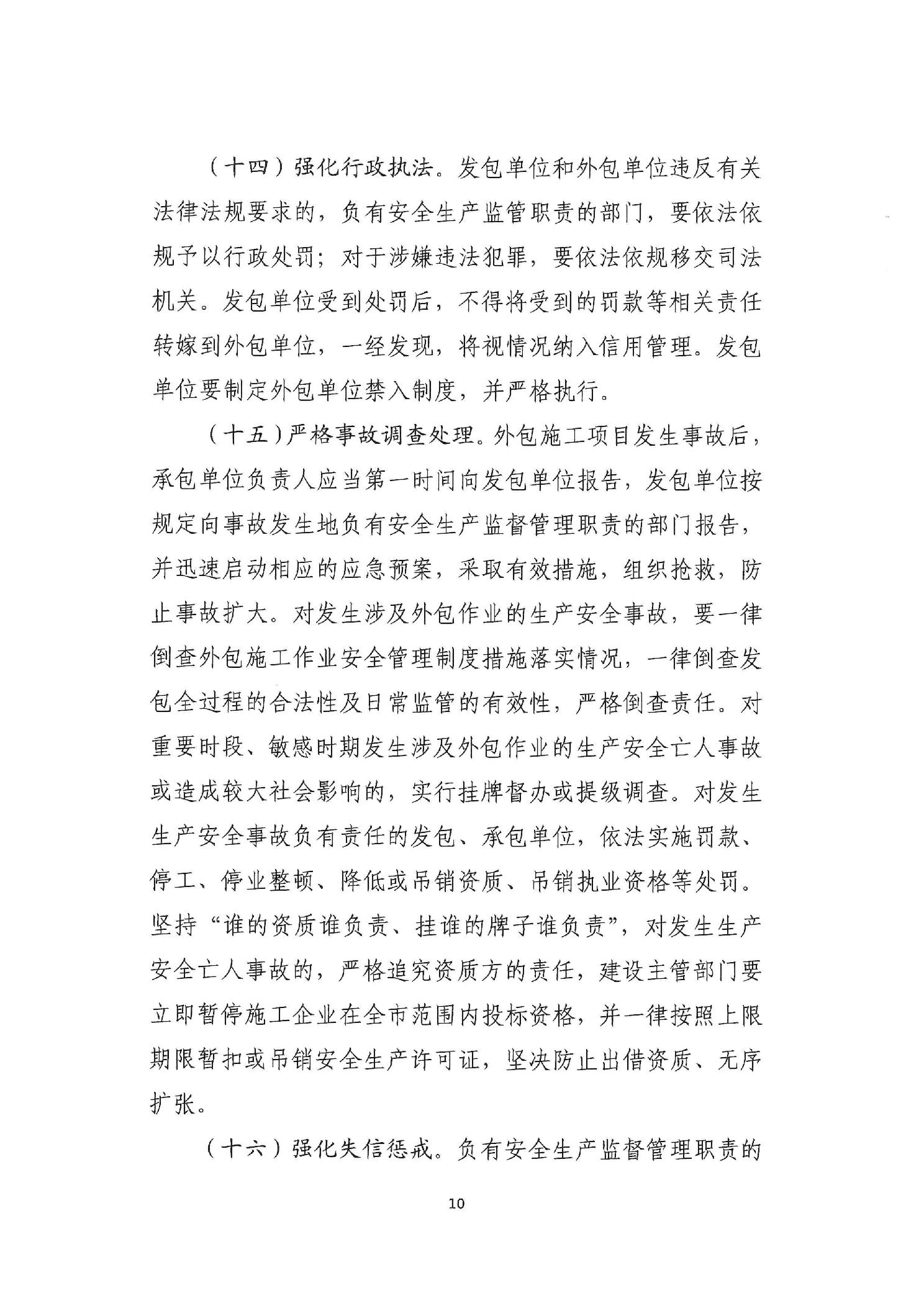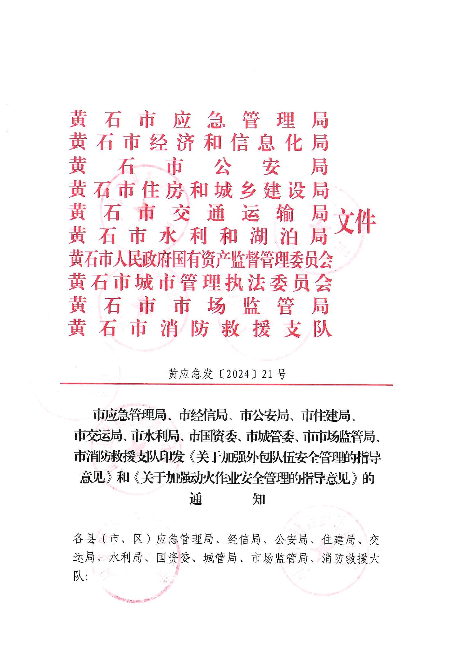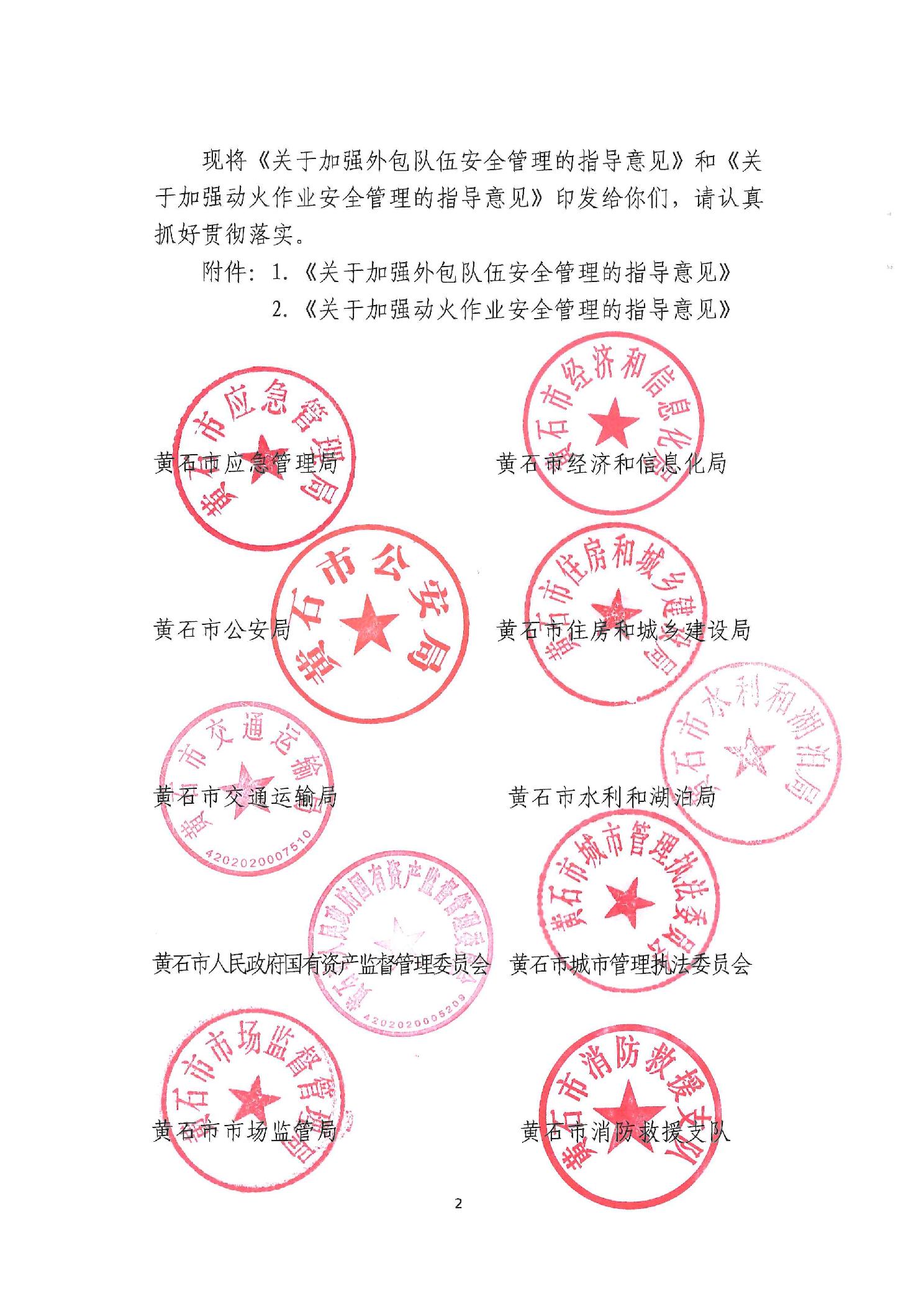 市应急局等10部门印发《关于加强外包队伍安全管理的指导意见》和《关于加强动火作业安全管理的指导意见》的通知