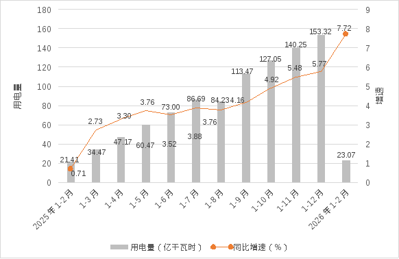 1-2月,全市工业累计用电量23.07亿千瓦时,同比增长7.72%,低于全省平均增速2.9个百分点。其中制造业用电量19.73亿千瓦时,同比增长10.3%。2月当月工业用电量9.6亿千瓦时,同比减少4.56%,低于全省平均增速0.09个百分点。