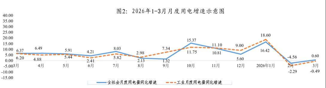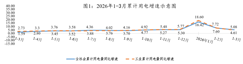 3月份,全社会用电量16.69亿千瓦时,同比增长0.6%,低于全省平均增速2.39个百分点,增速全省地区排名第11位;工业用电量12.99亿千瓦时,同比降低0.49%,低于全省平均增速2.85个百分点,增速全省地区排名第10位。工业本月用电量占全社会本月用电量的77.83%。