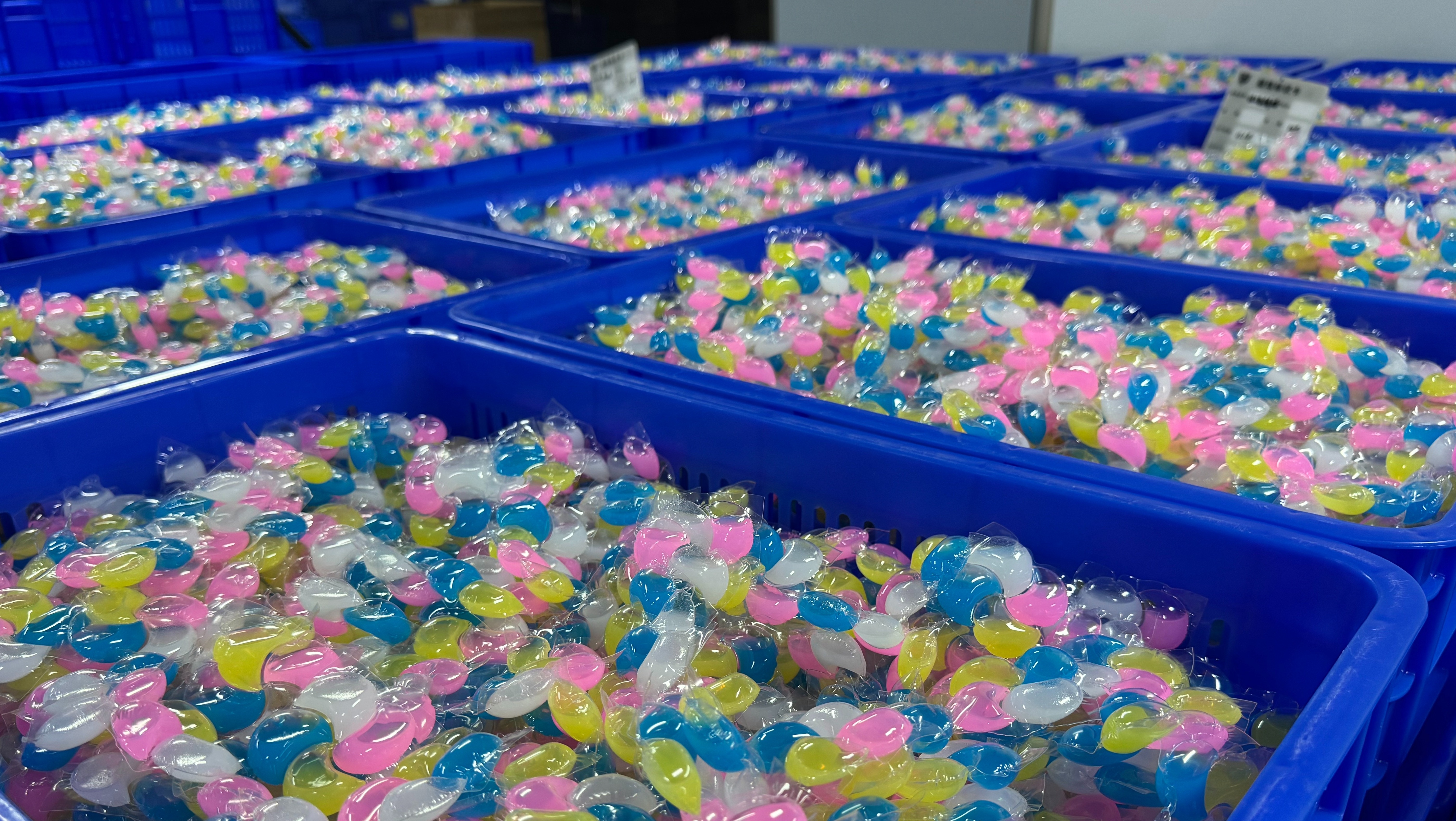 在市场端,燊牛日化旗下的碧虹品牌洗衣凝珠凭借超浓缩原液与“多效合一”的配方,迅速赢得了消费者的青睐。“相比普通洗衣液,凝珠功能更全面,今年销售额同比增长了10%。”刘桂林手持一颗玫瑰精油凝珠道出了其中的奥秘,独特的多腔室设计将去污、柔顺、香氛等成分分腔封装,在洗涤过程中分时段释放,各司其职,从而实现协同去污与持久留香。
