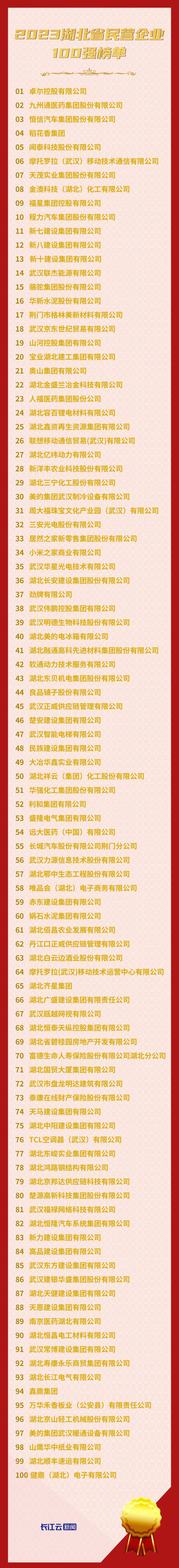 2023湖北民营企业100强入围门槛达45.5亿元,比上年增加6.4亿,有关情况如下: