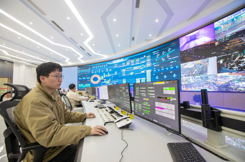 大冶特钢460钢管厂,员工在数智中心控制无缝钢管的生产全过程。