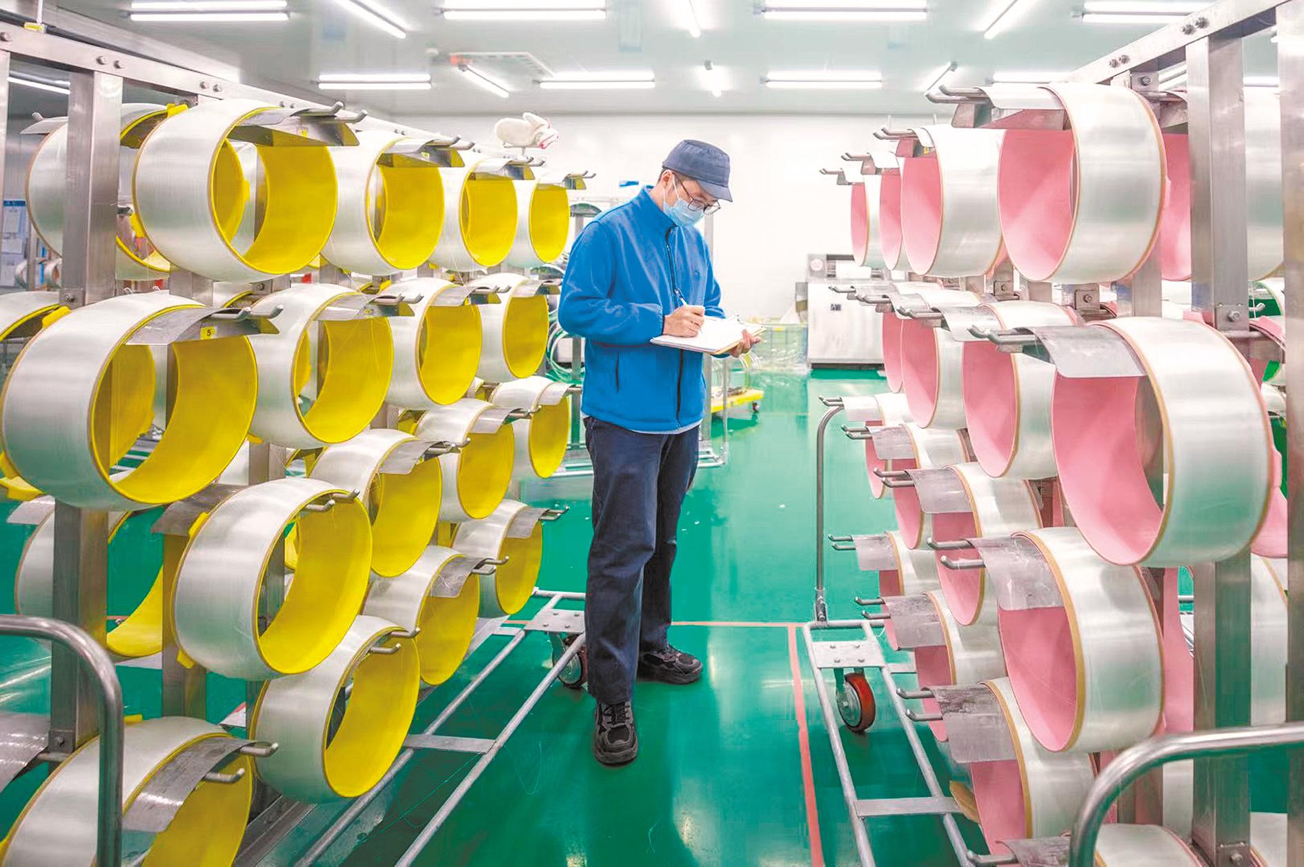 12月8日,黄石宏和电子材料科技有限公司员工正在赶制订单。该公司研发生产的电子级玻璃纤维纱,单丝直径4微米,是头发丝的1/20,成为国际市场上高端电子级玻璃纤维制品。目前,黄石宏和年产3万吨电子级玻璃纤维超细纱项目已顺利投产,年产5040万米的电子布项目也即将进入设备安装阶段。