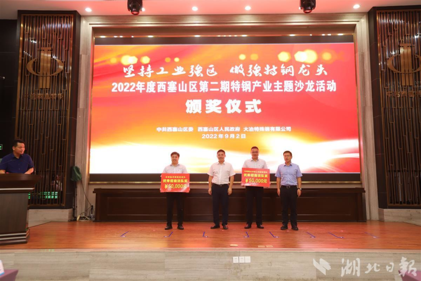 9月2日,黄石市西塞山区举行第二期特钢产业主题沙龙,为一批优秀招商团队、招商大使颁奖。