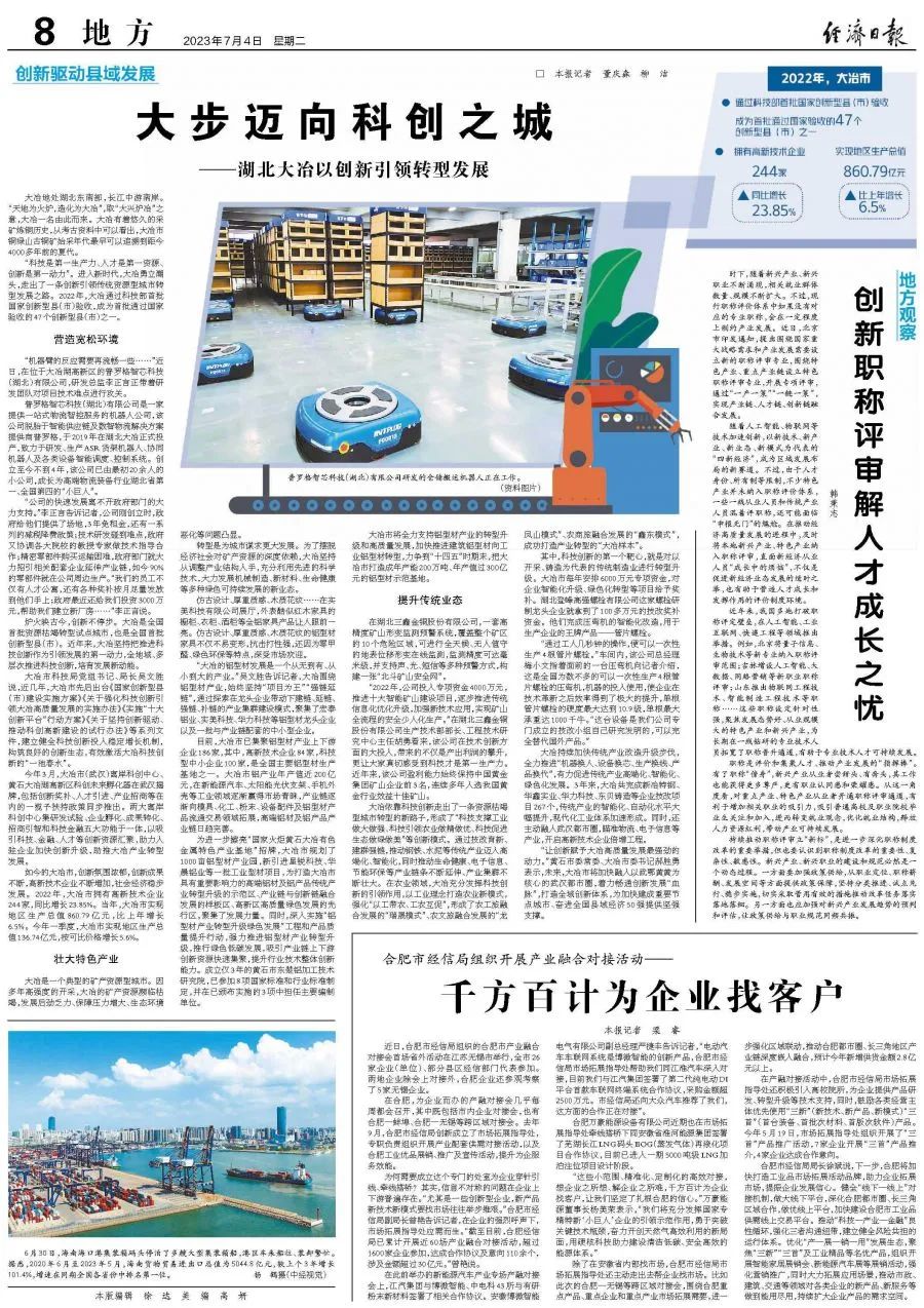 “科技是第一生产力、人才是第一资源、创新是第一动力”。进入新时代,大冶勇立潮头,走出了一条创新引领传统资源型城市转型发展之路。2022年,大冶通过科技部首批国家创新型县(市)验收,成为首批通过国家验收的47个创新型县(市)之一。