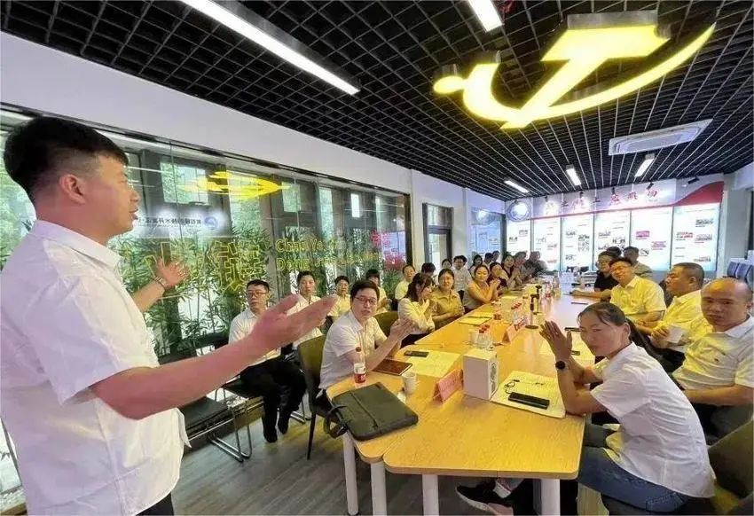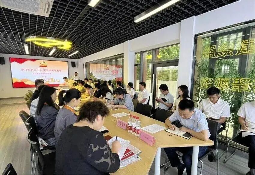 为弘扬伟大建党精神,凝聚市、区、企业各级党组织力量共同推进光电子信息“双链”工作,在庆祝中国共产党成立102周年之际,6月30日上午,开发区·铁山区产业链党建联盟成立后第一时间,市创新发展中心党组成员、副主任秦世昆主持召开了“学习党的二十大精神 实干担当促发展”联合支部主题党日活动,市创新发展中心、开发区·铁山区经信局、沪士电子等企业的30余名党员在党建联盟服务站参加了活动。