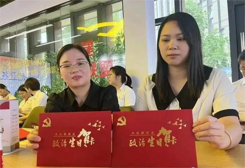 活动当天,市创新发展中心党员邢娟、朱丹丹、郭一凡,开发区·铁山区经信局党员王敏、程鹏,沪士电子公司党员李庆、李静静、周双胜等8名党员收到了党支部发放的政治生日贺卡。接到贺卡的党员一致表示,收到这张充满仪式感的“生日贺卡”内心激动不已。